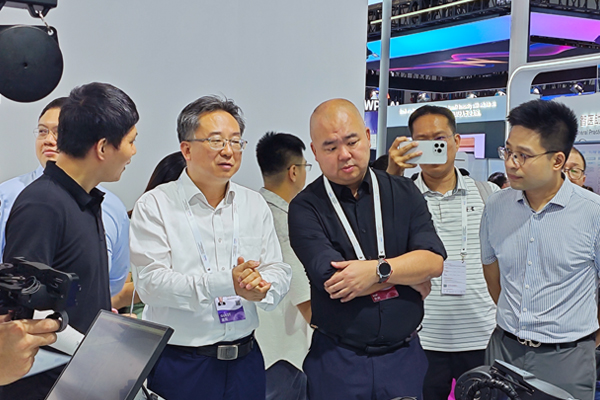 大会期间,王文军一行人参观了科大讯飞人工智能展台,星火企业军团高级副总经理陈乾坤详细介绍了讯飞星火X1大模型、星火智算平台、聆动具身智能采训推一体机和讯飞智作AIGC等AI产品,王文军对这些创新成果表现出高度关注。